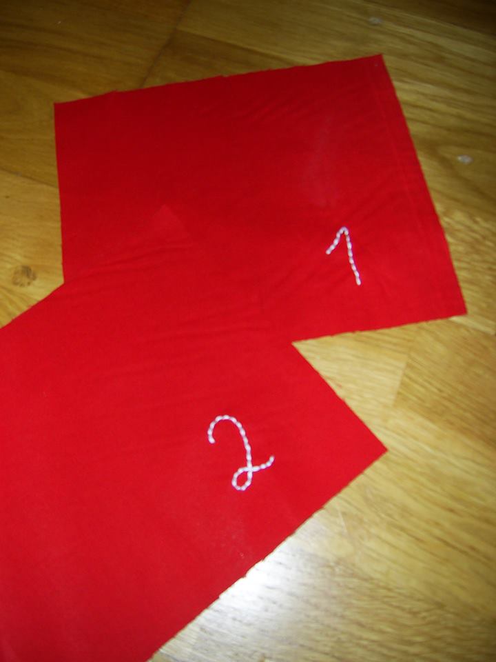 - Aus dem Stoff 24 gleich große Rechtecke zuschneiden. Die Größe richtet sich danach, was ihr verschenken wollt. Allgemein halte ich hier mal folgende Regeln für den Zuschnitt der Säckchen fest: